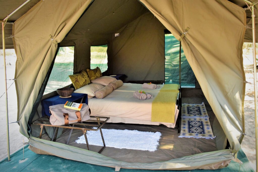 Safari With Me Safaris provides guests with: 2.1m x 2.1m x 1.75m dome tents to share (single on request – extra charges apply); a 5cm high-density foam mattress per guest (extra mattress on request – extra charges apply); cooking in front of camp. Guests should bring their own sleeping bags and pillows but can also request to rent from us (extra charges apply)